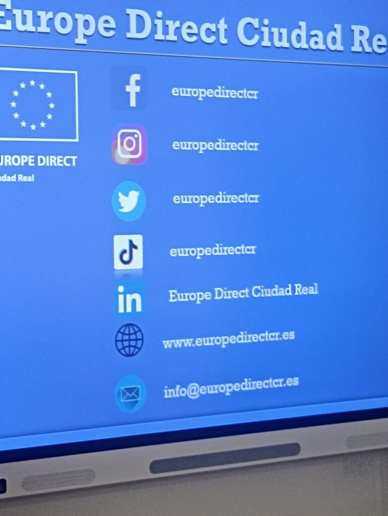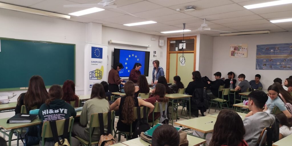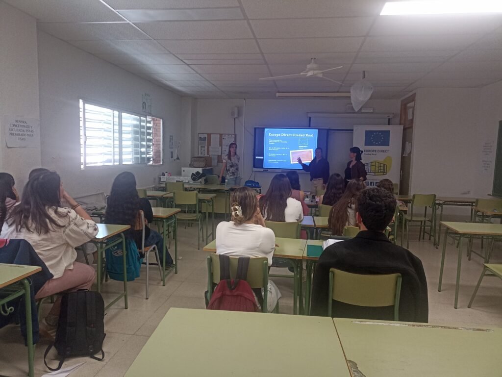 El alumnado de 1º de bachillerato de Economía y de 2º de bachillerato de FAGE ha asistido a una charla propuesta por el departamento de Economía e impartida por la coordinadora de Europe Direc del Ayuntamiento de Ciudad Real