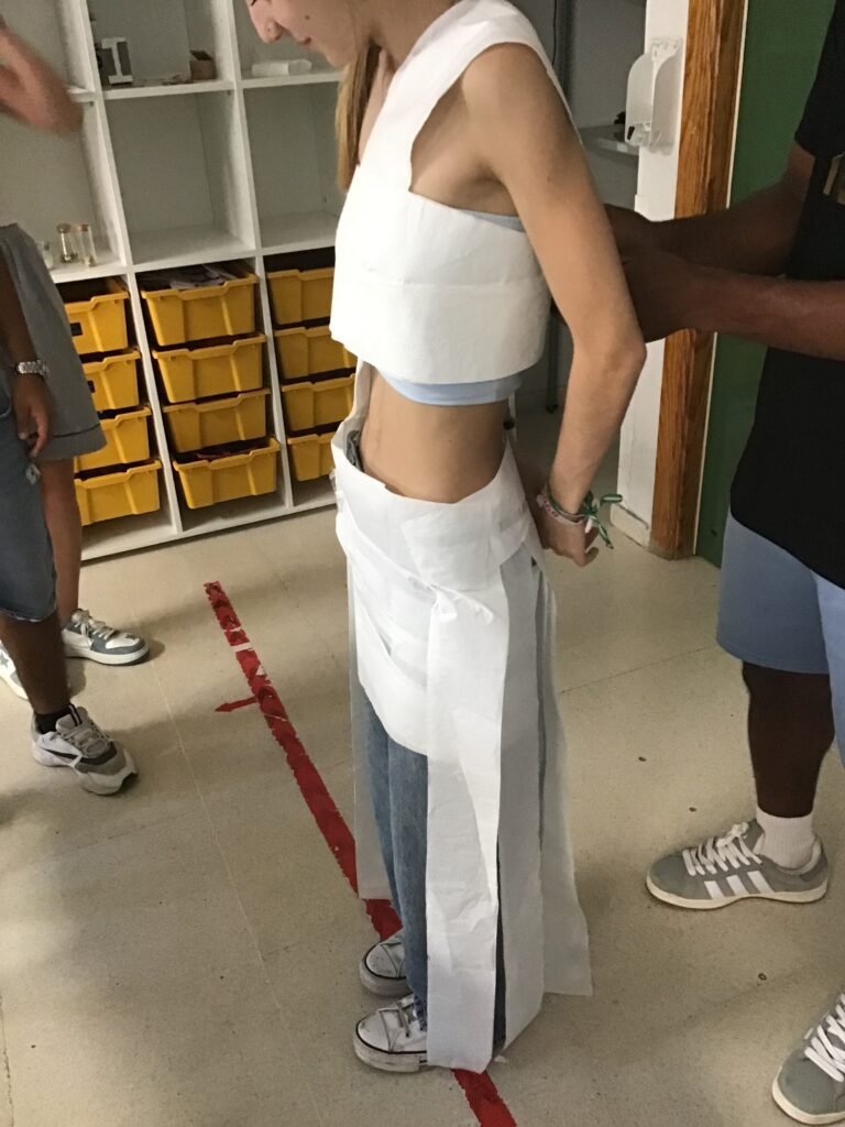 Un rollo de papel higiénico, tijeras y celo serán los materiales con los que tendremos que diseñar un traje de novia.