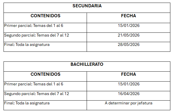 2.- A lo largo del presente curso se realizarán dos exámenes parciales y deberán entregar actividades propuestas en los plazos establecidos.