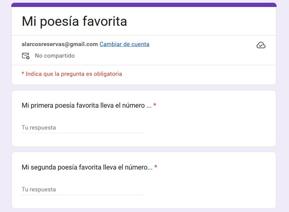- Vota haciendo click en el enlace: haz clic en el formulario de participación y responde dos preguntas cortas escribiendo solamente los números de tus dos poemas elegidos.